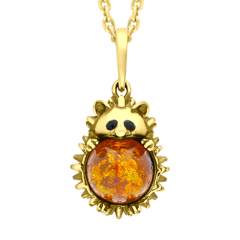 18ct Yellow Gold Amber Large Hedgehog Necklace