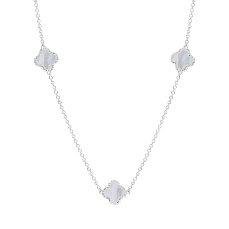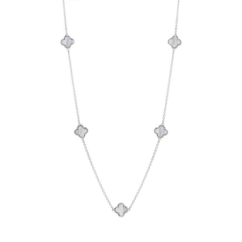 • 18ct White Gold White Mother of Pearl Bloom Four Leaf Clover Ball Edge Necklace - N1154 (BLM-461)
