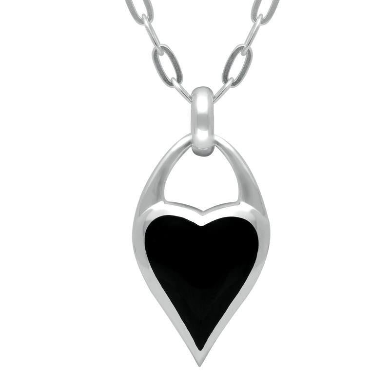 Sterling Silver Whitby Jet Heart Carrier Two Piece Set