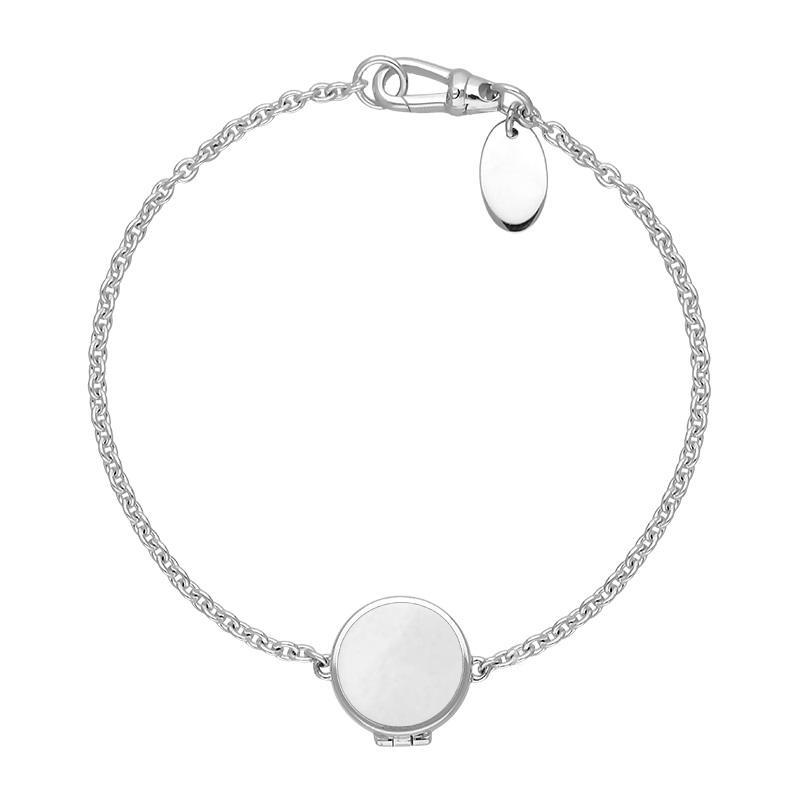Sterling Silver Pink Mother of Pearl Round Locket Chain Bracelet