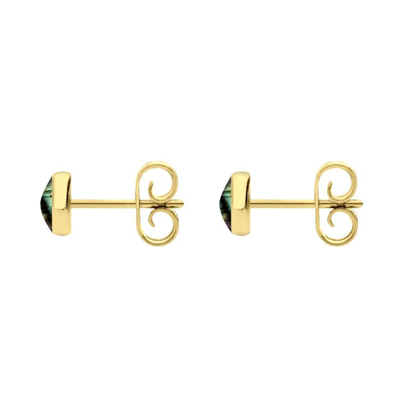 Robert & Victoria 9ct Yellow Gold Spectrolite 5mm Classic Small Round Stud Earrings, E002.