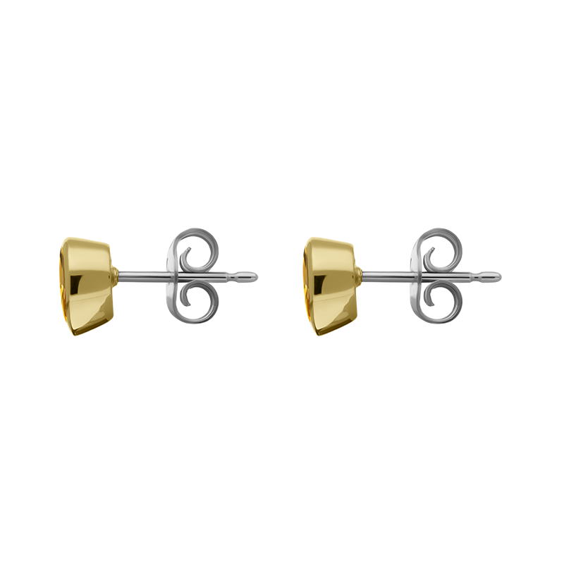 These stud earrings feature highly polished genuine Citrine set in 9ct yellow gold frames with sterling silver post and butterfly fastenings.