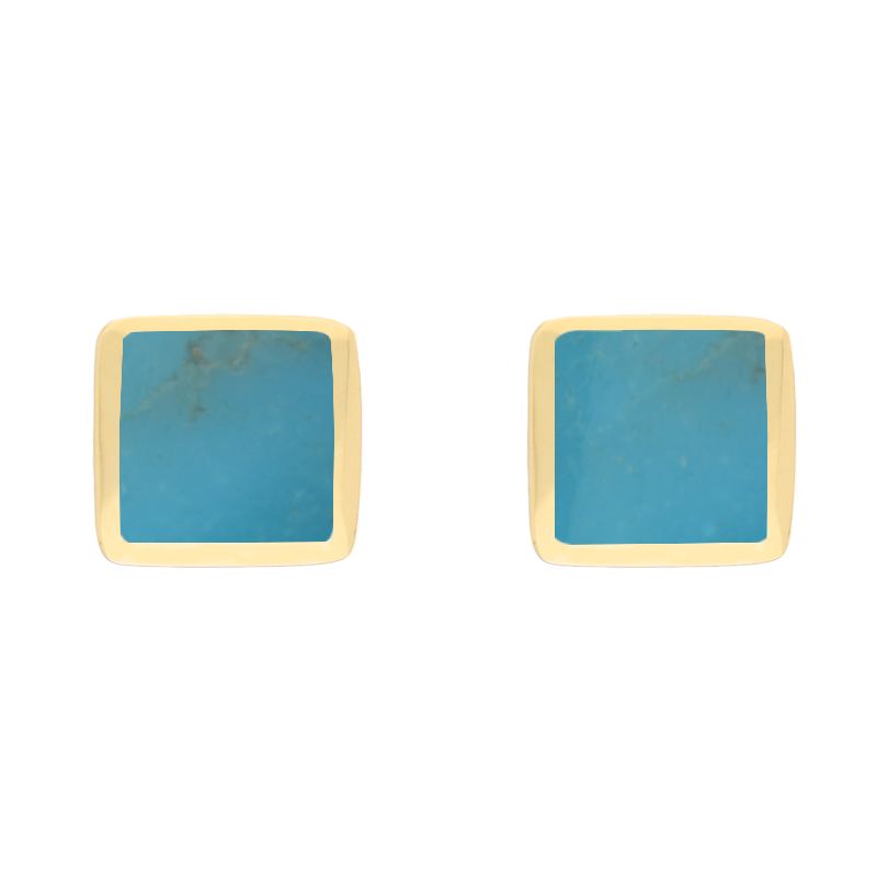 9ct Yellow Gold Sterling Silver Turquoise Stepping Stones Square Stud Earrings E1295