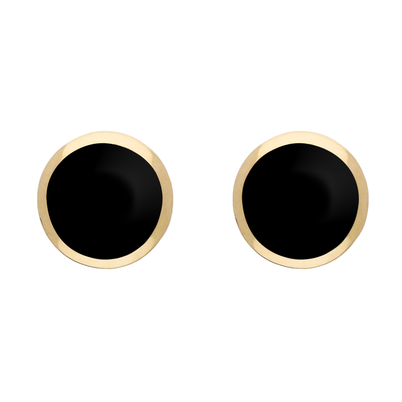 9ct Yellow Gold Sterling Silver Whitby Jet Stepping Stones Round Stud Earrings E1292