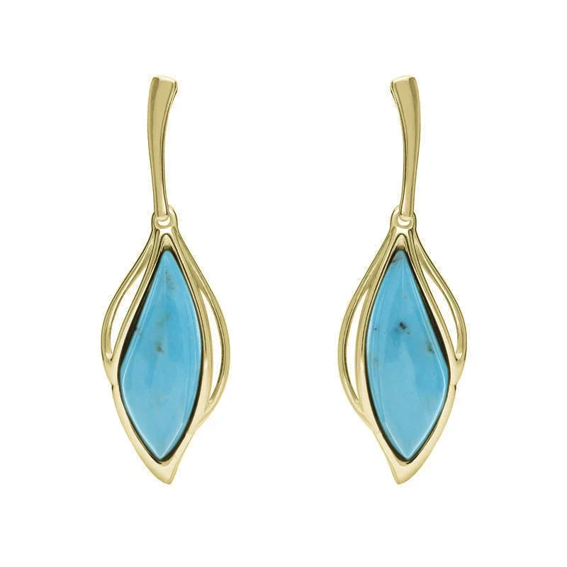 9ct Yellow Gold Turquoise Open Marquise Drop Earrings, E2437