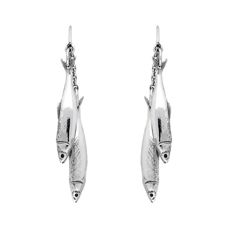 Sterling Silver Emma Stothard Silver Darling Double Drop Hook Earrings