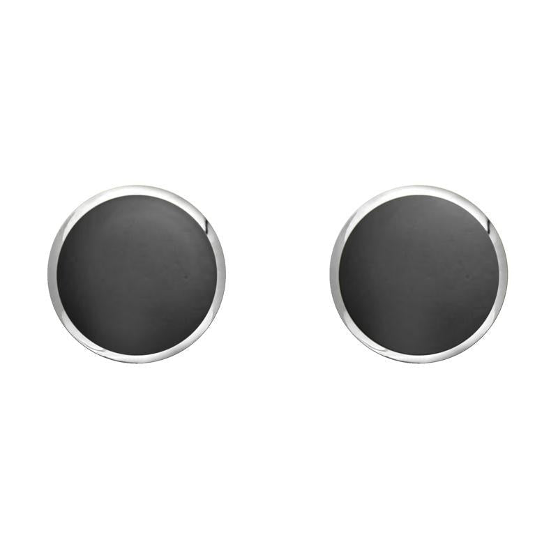 An embodiment of classic style, these sterling silver earrings feature two hand-carved circular cabochons of the finest Hematite stone. The Hematite is elegantly framed in sterling silver and the earrings are completed with secure post and butterfly fastenings, making them perfect for everyday wear.