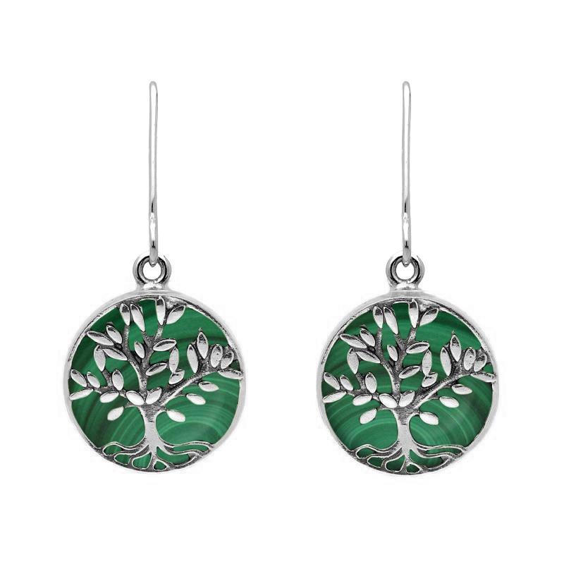 This set of elegant sterling silver and Malachite Tree of Life design drop earrings are perfect for any occasion. In ancient times the Tree of Life was considered to be a symbol of immortality. The leaves on the tree were thought to have magical properties and elements to heal the soul.