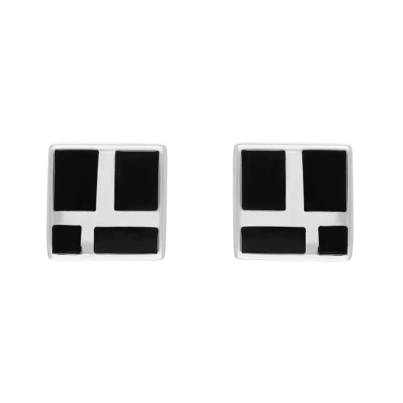 Sterling Silver Whitby Jet Small Four Stone Square Stud Earrings
