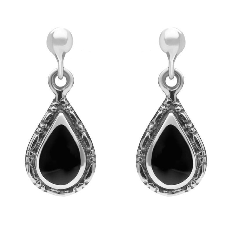 Sterling Silver Whitby Jet Small Pear Drop Earrings