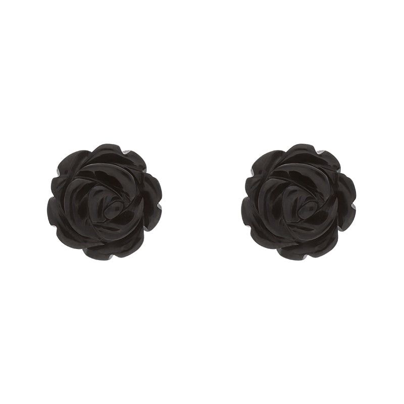 Sterling Silver Whitby Jet Tuberose 8mm Rose Stud Earrings