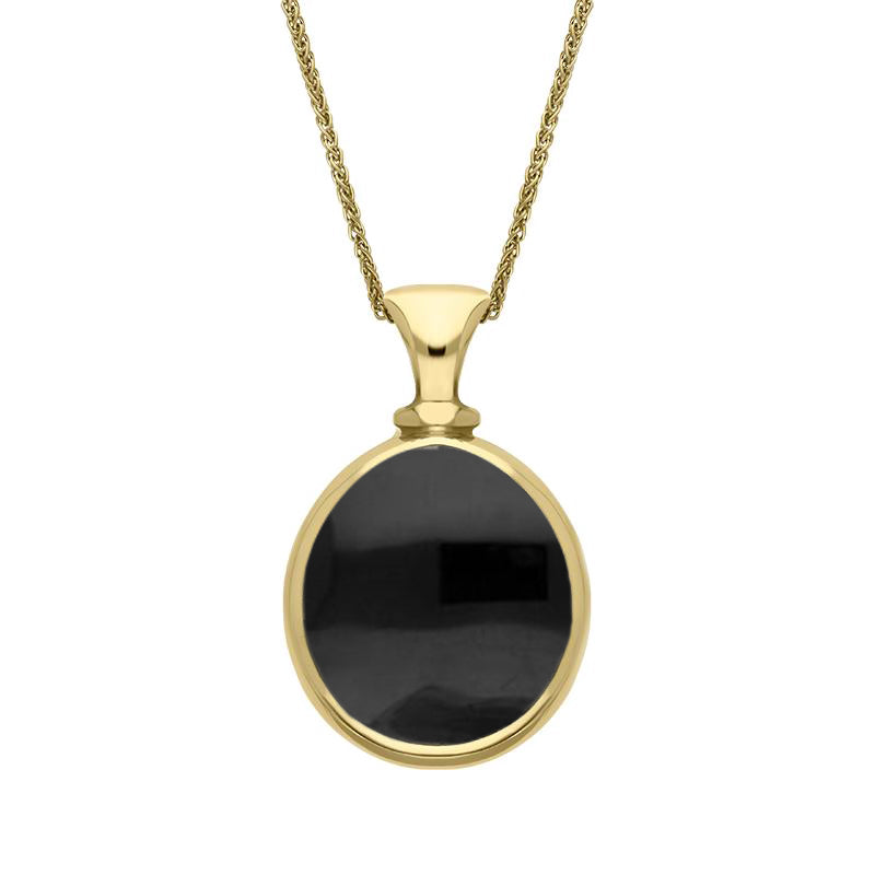 18ct Yellow Gold Whitby Jet Lapis Lazuli Small Double Sided Pear Fob Necklace, P220.