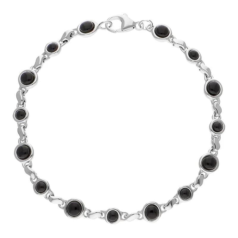 Sterling Silver Whitby Jet Round Bead Link Bracelet, B884.