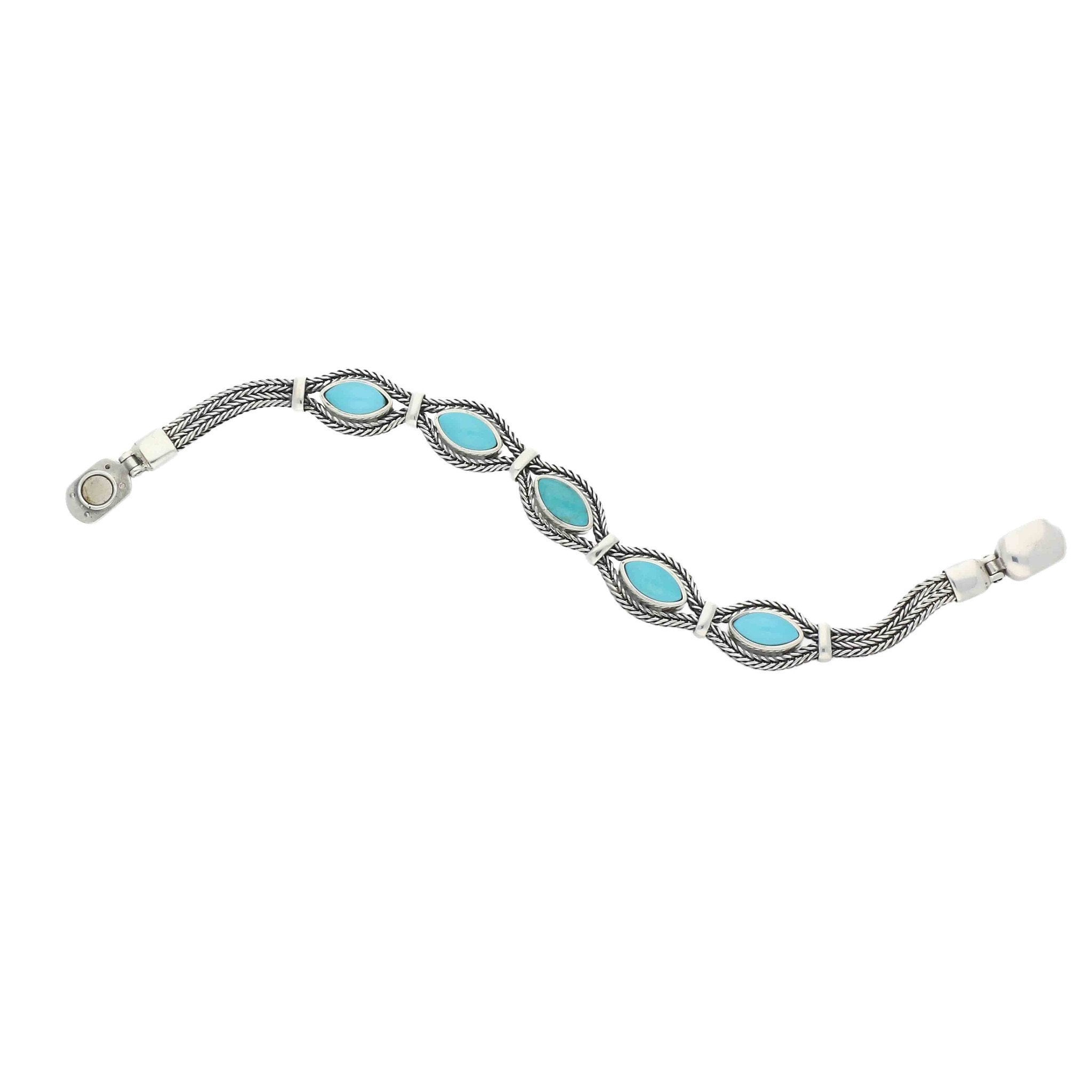 Sterling Silver Turquoise Five Stone Marquise Foxtail Bracelet D