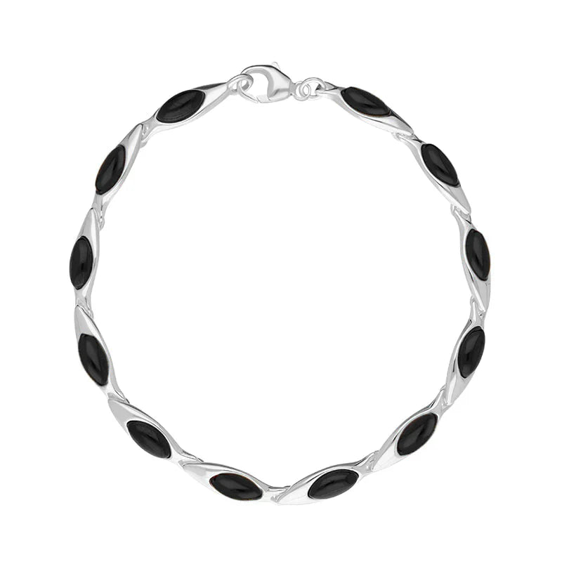 Sterling Silver Whitby Jet Marquise Link Bracelet