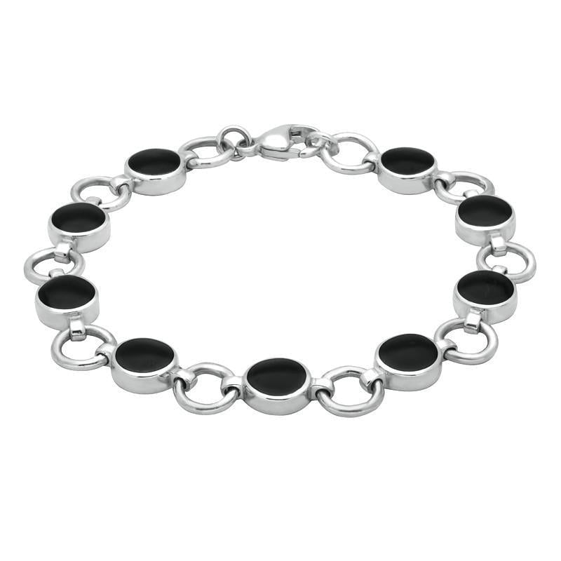Sterling Silver Whitby Jet Nine Stone Round Ring Bracelet