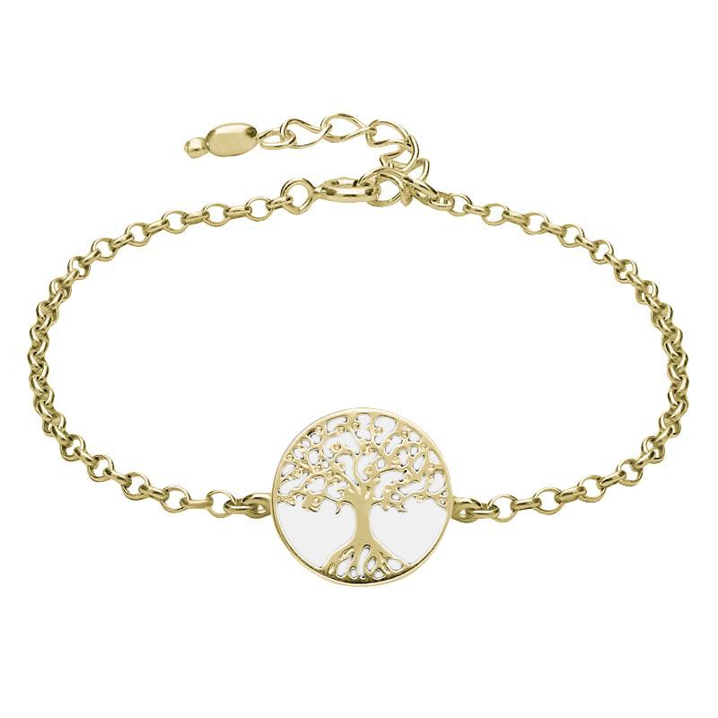 9ct Yellow Gold Bauxite Round Tree of Life Chain Bracelet, B1140.