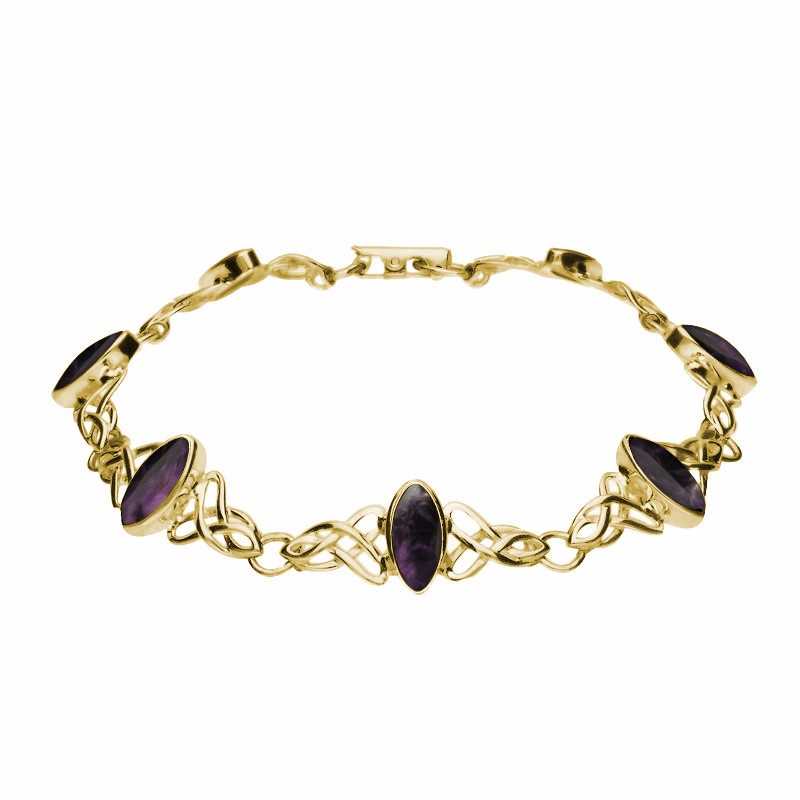 9ct Yellow Gold Blue John Marquise Shaped Celtic Bracelet