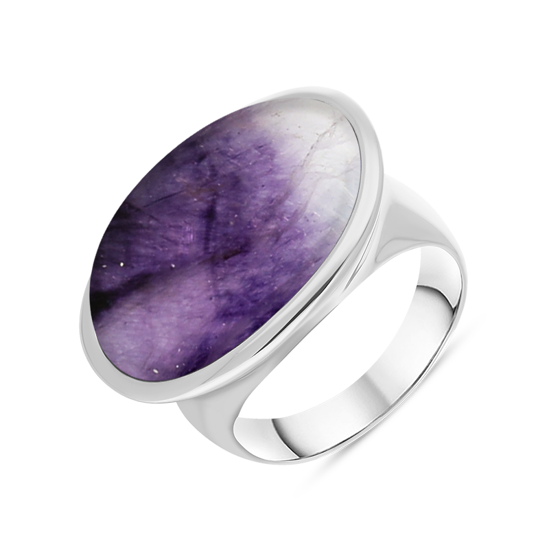 Sterling Silver Blue John Wide Oval Chunky Ring, R840.