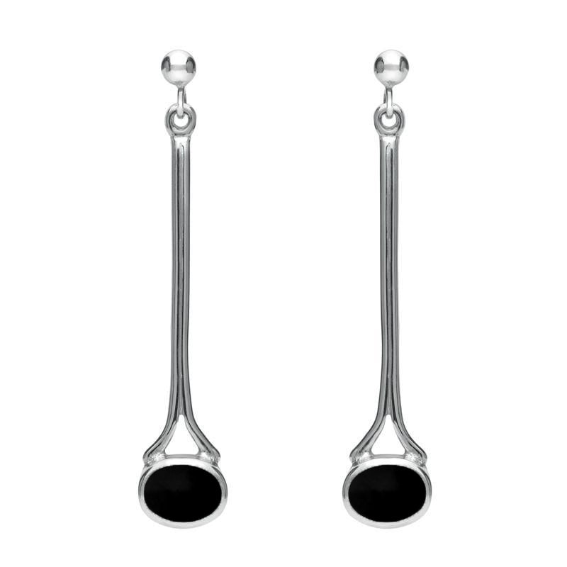9ct White Gold Whitby Jet Long Drop Earrings E094