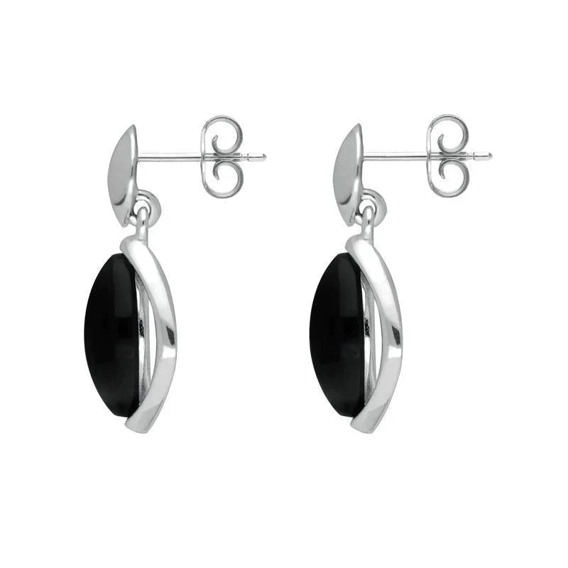 Sterling Silver Whitby Jet Marquise Centre Drop Earrings