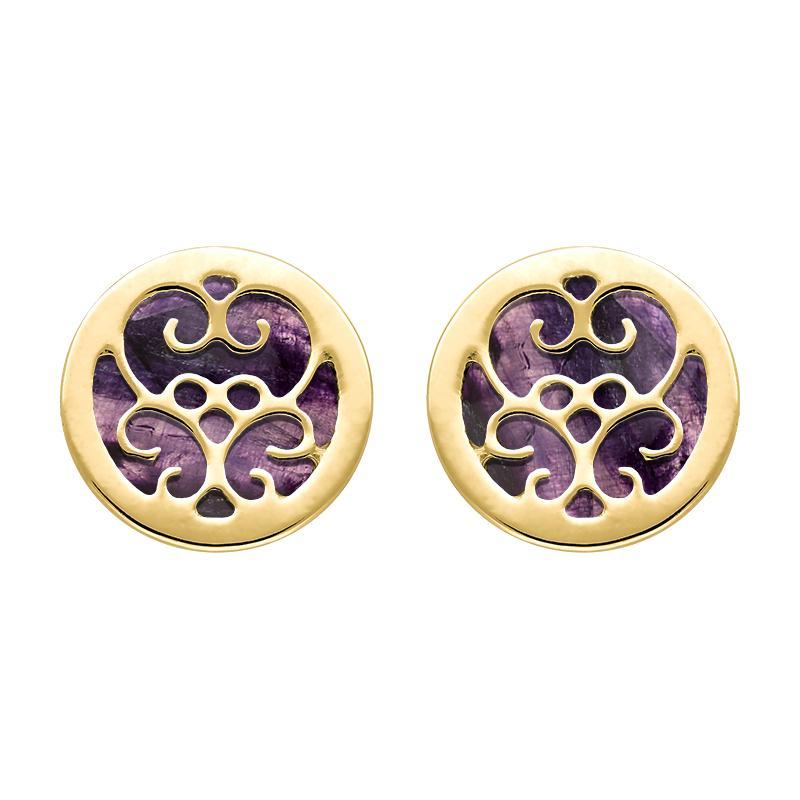 9ct Yellow Gold Blue John Flore Filigree Stud Earrings, E1782