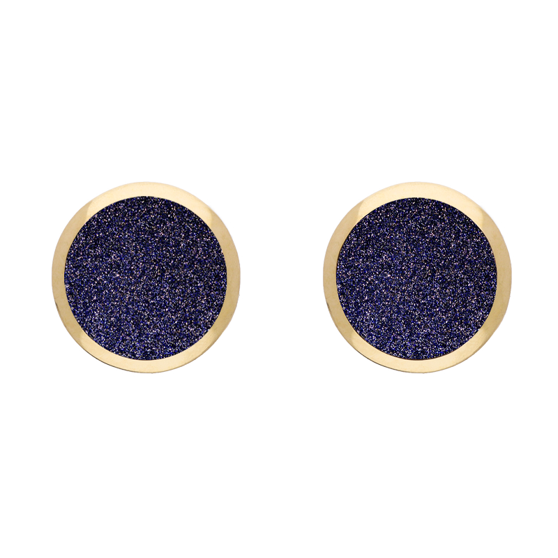 9ct Yellow Gold Sterling Silver Blue Goldstone Stepping Stones Round Stud Earrings