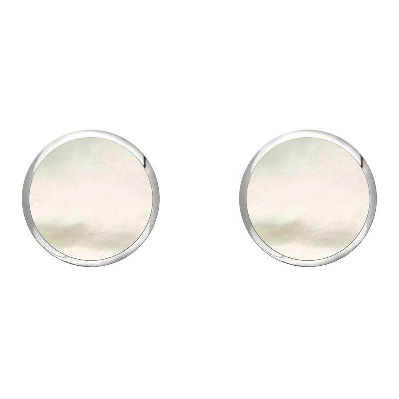 Sterling Silver White Mother of Pearl 8mm Classic Large Round Stud Earrings, E004