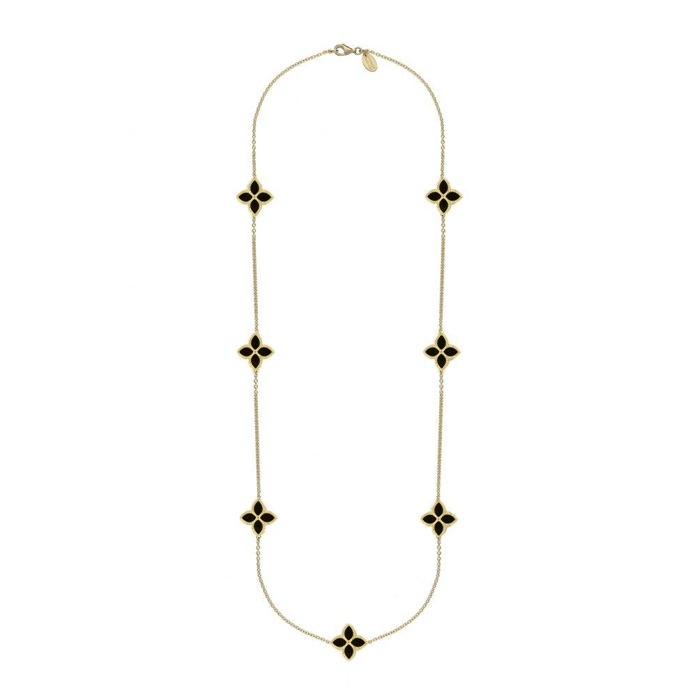 9ct Yellow Gold Whitby Jet Eden Long Marquise Flower Necklace