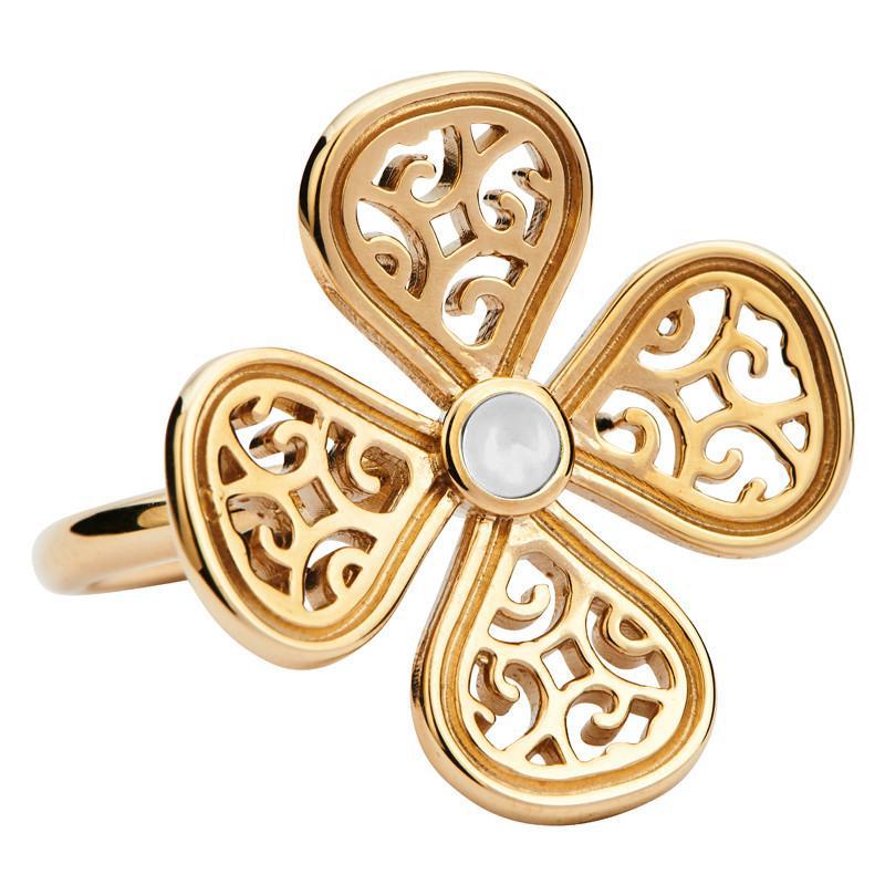9ct Yellow Gold Bauxite Flore Four Petal Filigree Ring