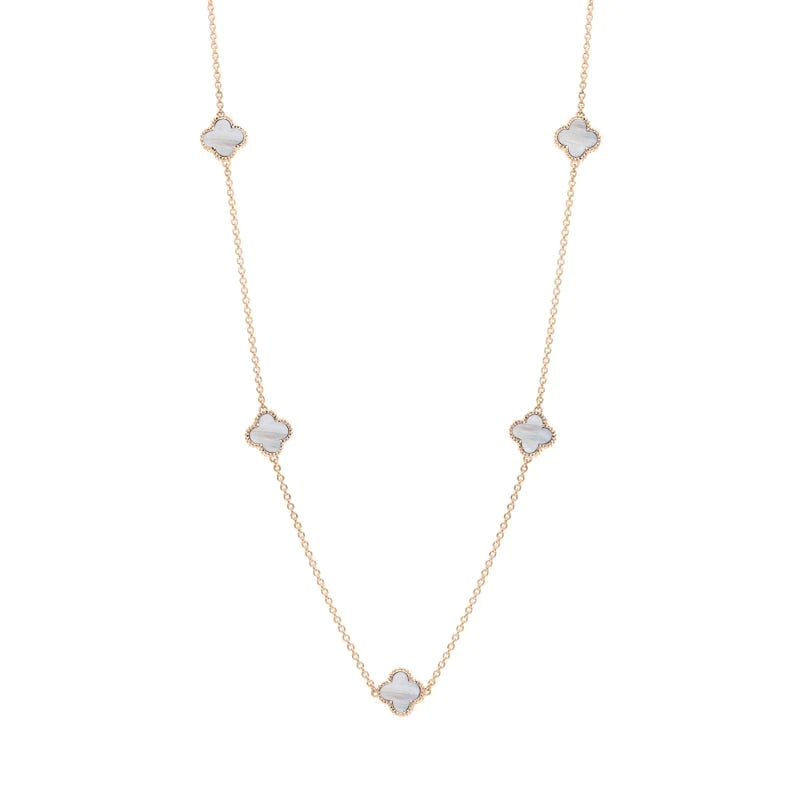 • 18ct Rose Gold White Mother of Pearl Bloom Four Leaf Clover Ball Edge Necklace - N1154 (BLM-460)