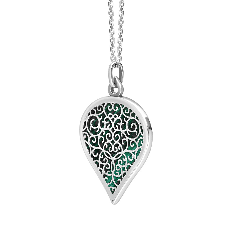 18ct White Gold Malachite Flore Filigree Large Heart Necklace