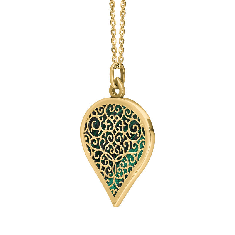 18ct Yellow Gold Malachite Flore Filigree Large Heart Necklace