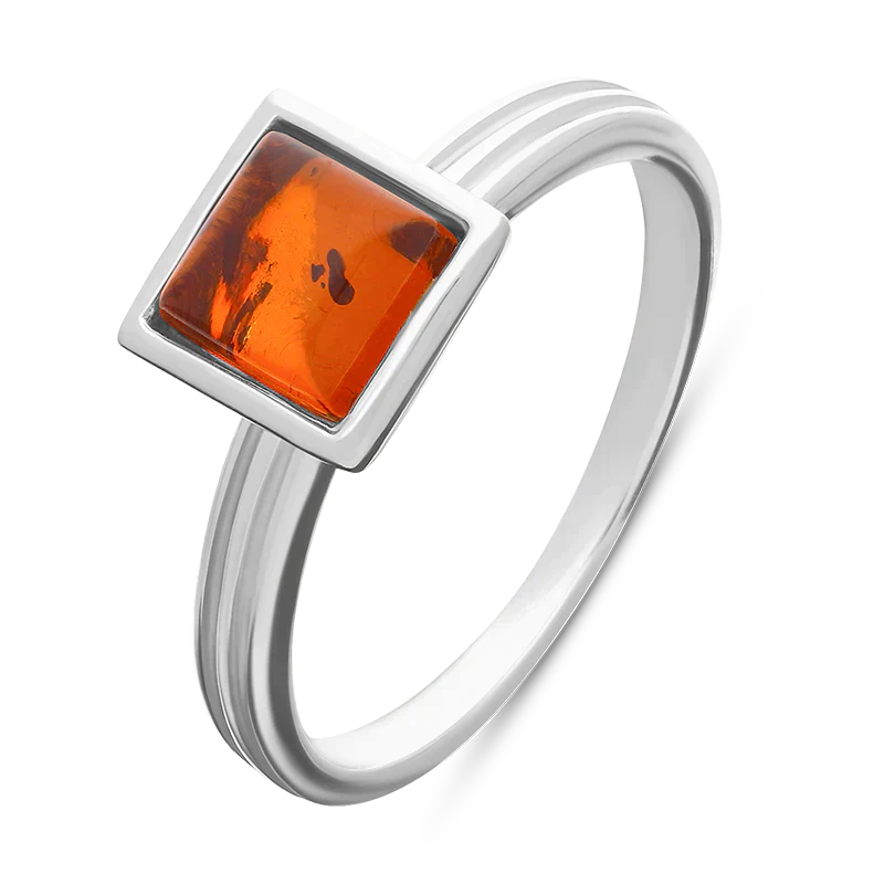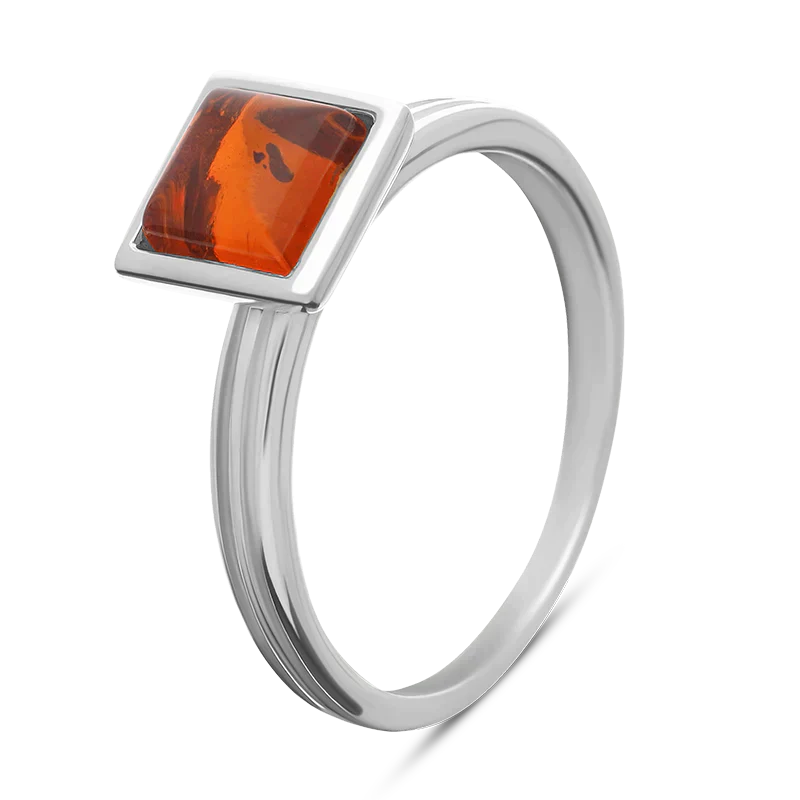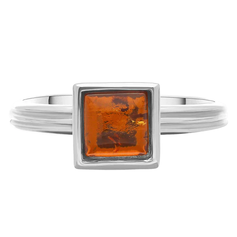 Sterling Silver Amber Square Stacking Ring