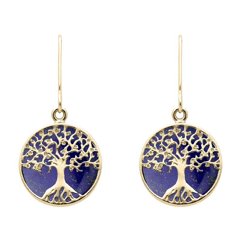 9ct Yellow Gold Lapis Lazuli Round Tree of Life Drop Earrings, E2429.