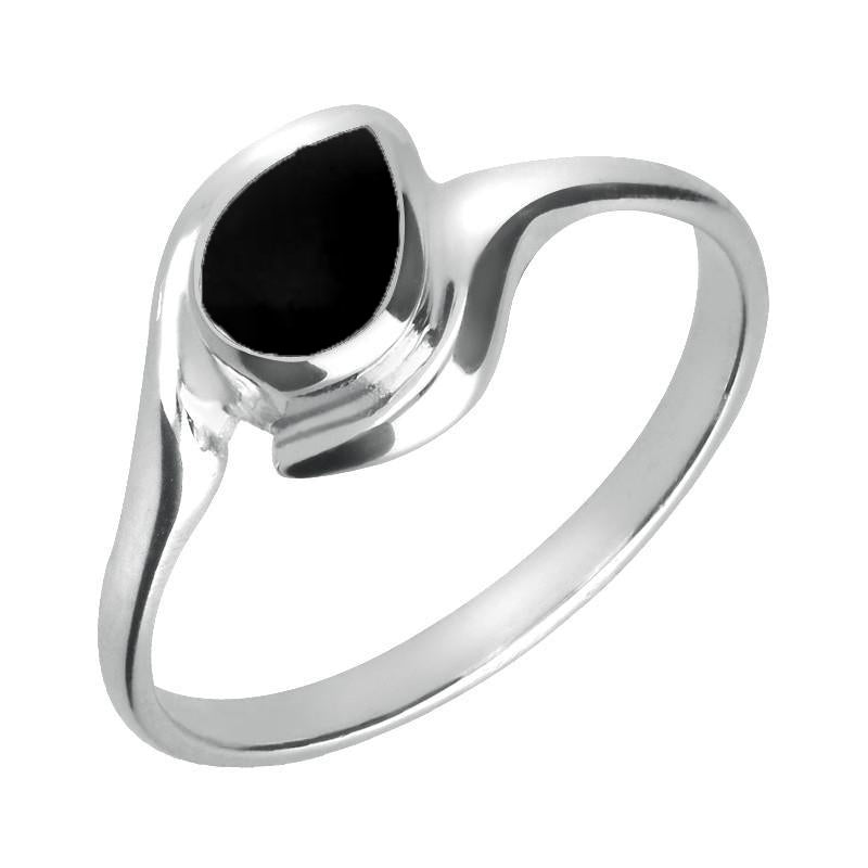 • 18ct White Gold Whitby Jet Offset Pear Ring - R071 (HER-4289)