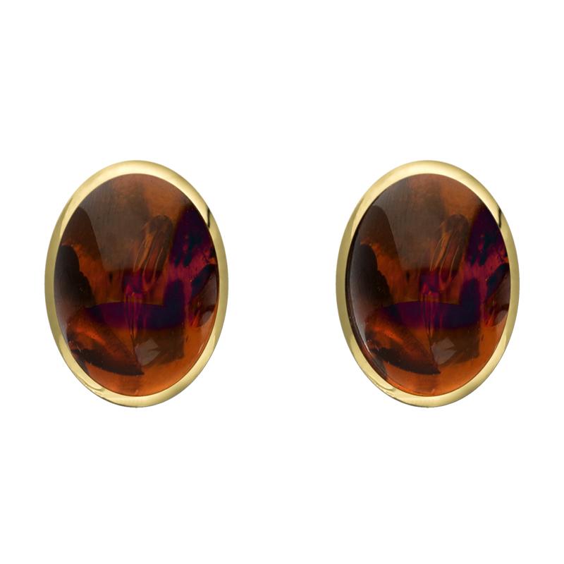 9ct Yellow Gold Amber 8 x 10mm Classic Large Oval Stud Earrings, E007.