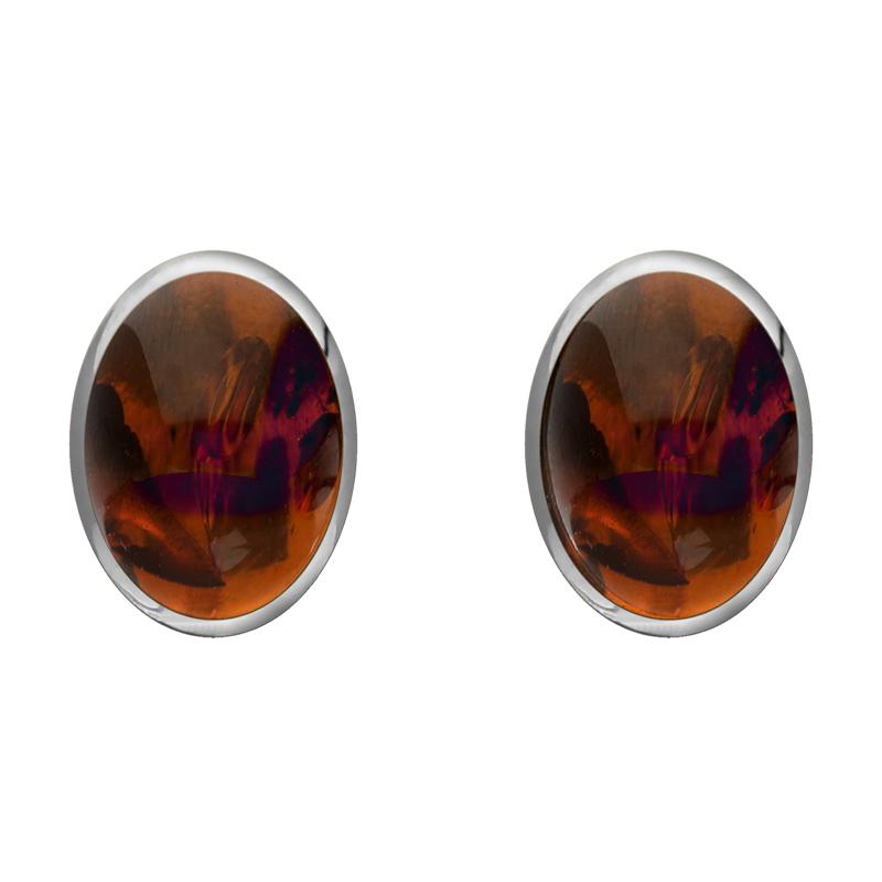 Sterling Silver Amber 8 x 10mm Classic Large Oval Stud Earrings, E007