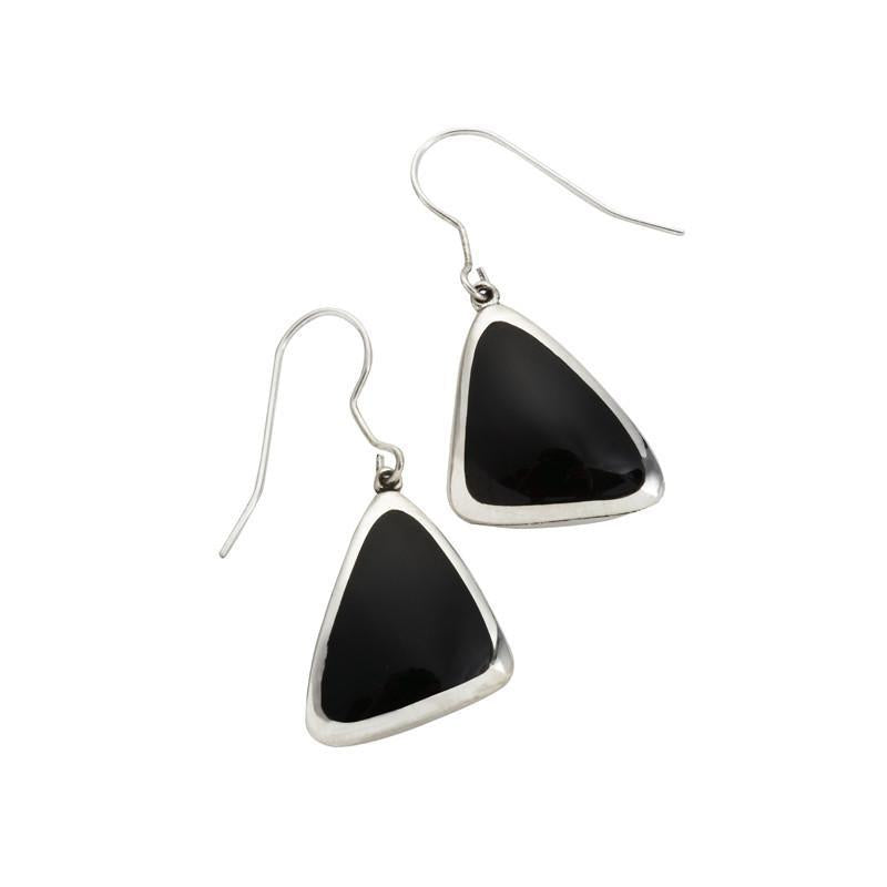 • Sterling Silver Whitby Jet Abstract Triangle Hook Drop Earrings - E1281 (00073899)