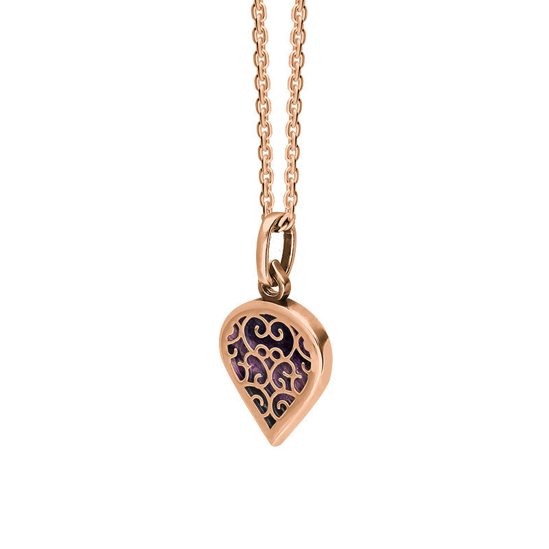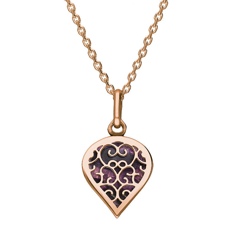 18ct Rose Gold Blue John Flore Filigree Small Heart Necklace. P3629.