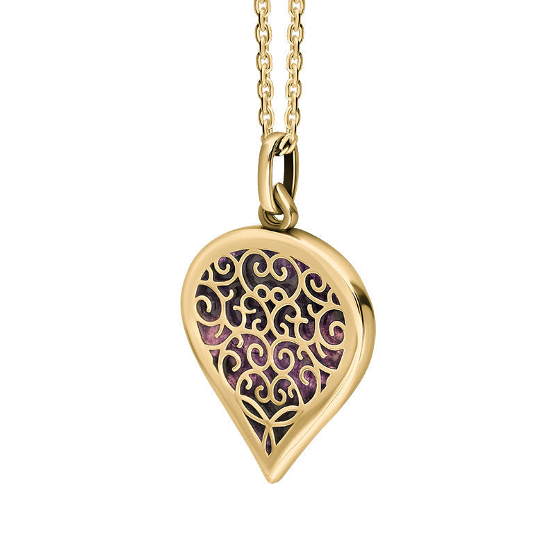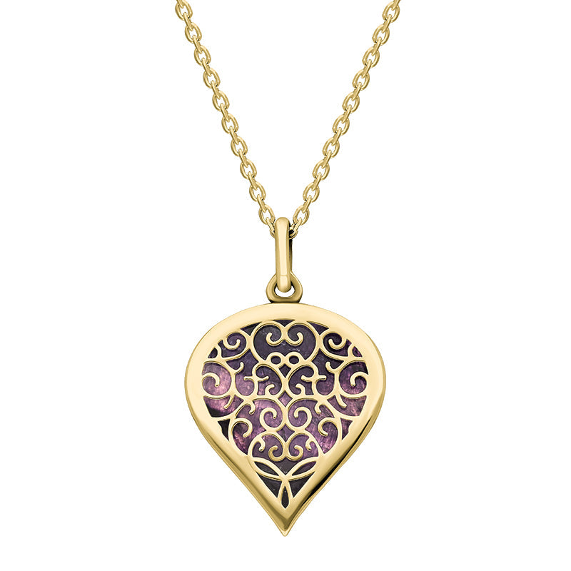 18ct Yellow Gold Blue John Flore Filigree Medium Heart Necklace. P3630.