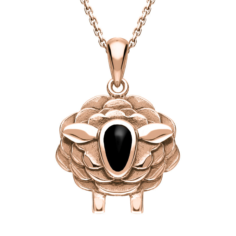 9ct Rose Gold Whitby Jet Sheep Necklace, P3508.