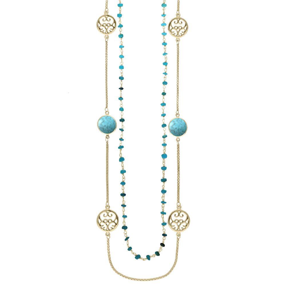 Yellow Gold Turquoise Flore Filigree Double Row Necklace