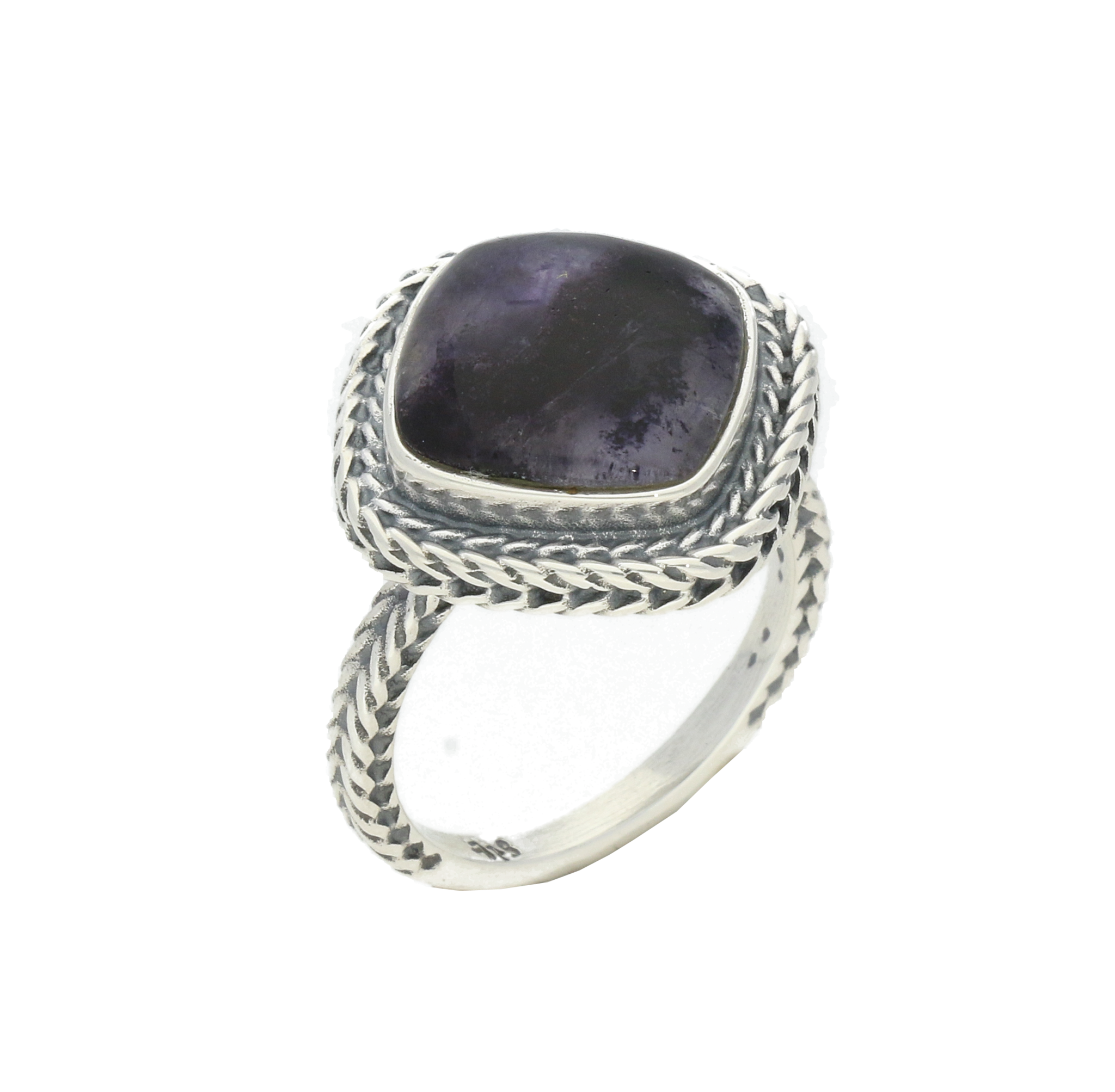 Sterling Silver Blue John Cushion Foxtail Ring. R851.