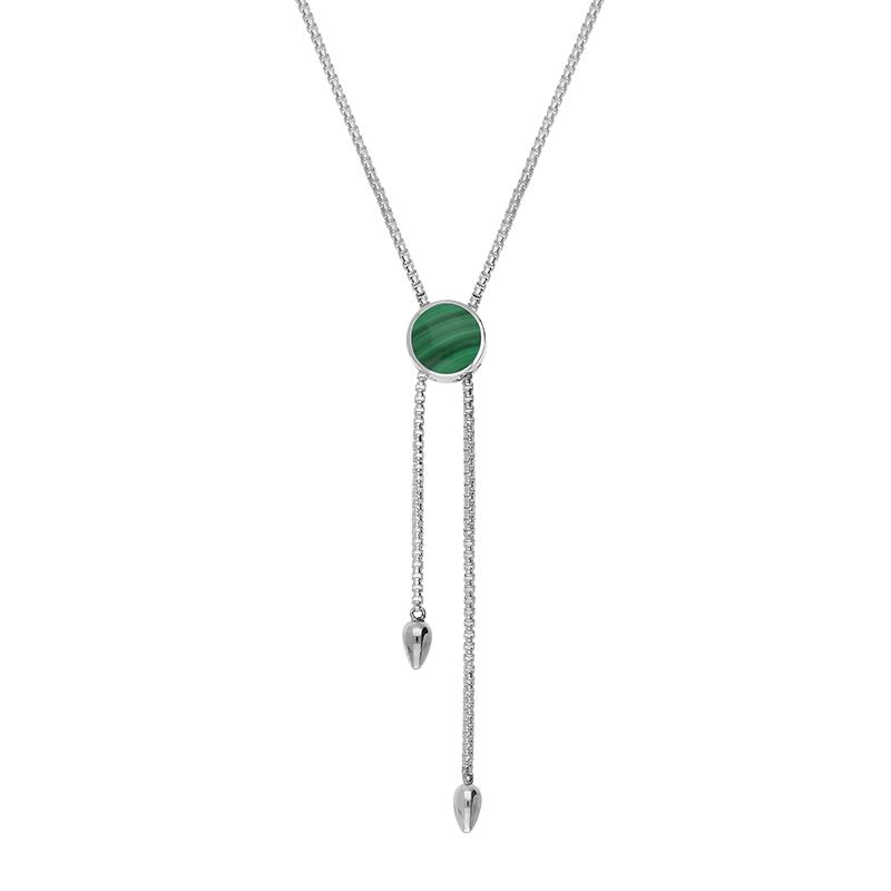 Sterling Silver Malachite Lineaire Round Stone Adjustable Necklace