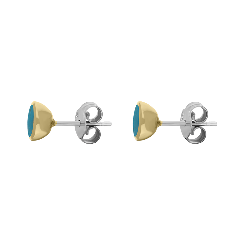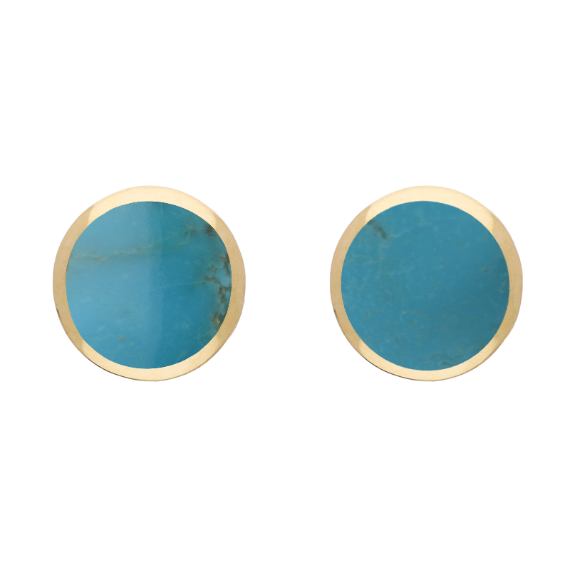 9ct Yellow Gold Sterling Silver Turquoise Stepping Stones Round Stud Earrings