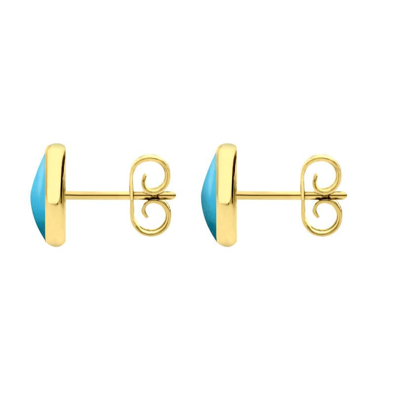 9ct Yellow Gold Turquoise 8mm Classic Large Round Stud Earrings, E004