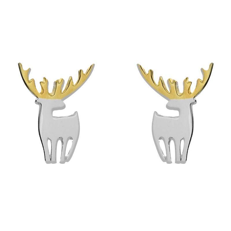 Yellow Gold Plated Sterling Silver Reindeer Silhouette Earrings. E2228.