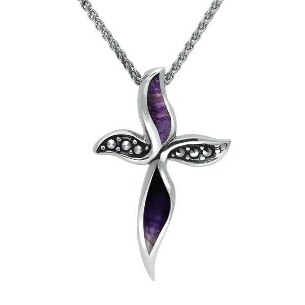 Sterling Silver Blue John and Marcasite Wavy Cross Necklace, P1309.