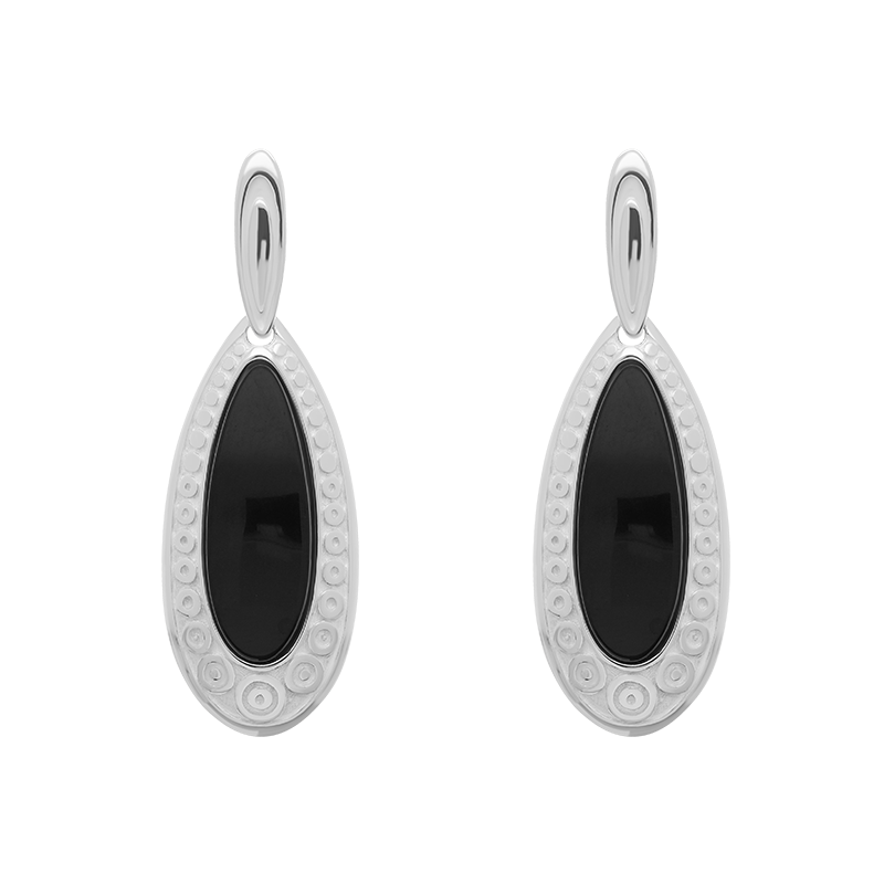 Sterling Silver Whitby Jet Graduated Pear Drop Earrings E2584